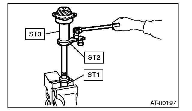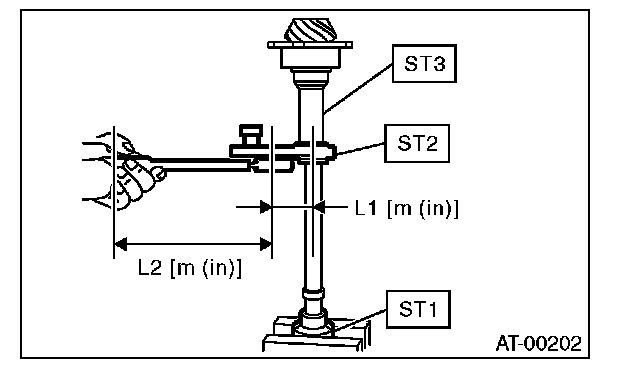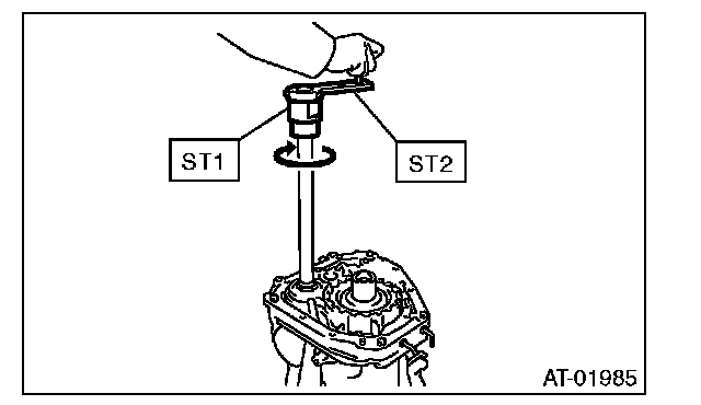 4) Rotate the drive pinion a few times using ST1 and ST2.
