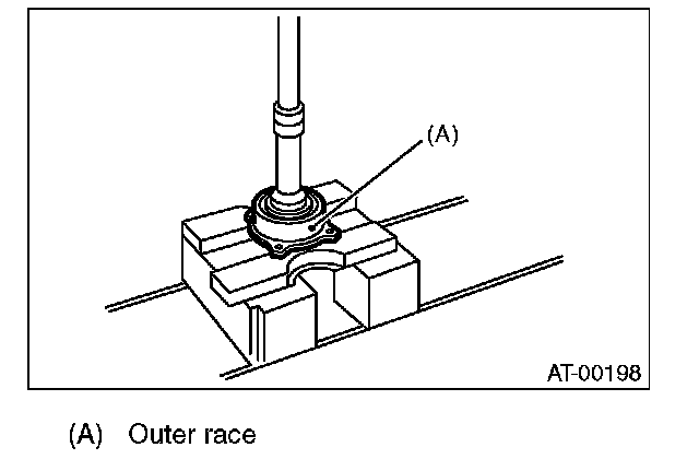 3) Separate the roller bearing and outer race from shaft using a press.