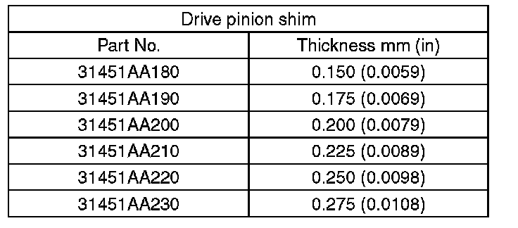 8) Calculate the thickness "t" mm (in) of the drive pinion shim.