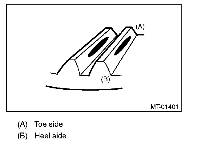 Check item: Tooth contact surface is slightly shifted toward the toe side under a no-load condition. (When driving, it moves towards the heel side.