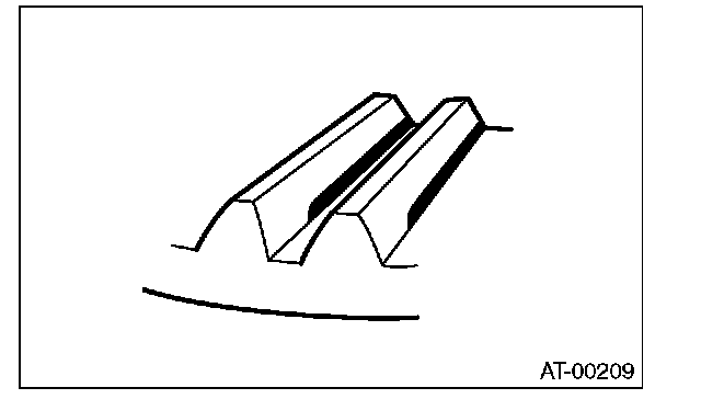 6) Apply lead-free red dye evenly on the surface of three to four teeth of the hypoid driven gear. Rotate the drive pinion in the leftward and rightward for several times. Remove the oil pump cover, and check the tooth contact pattern.