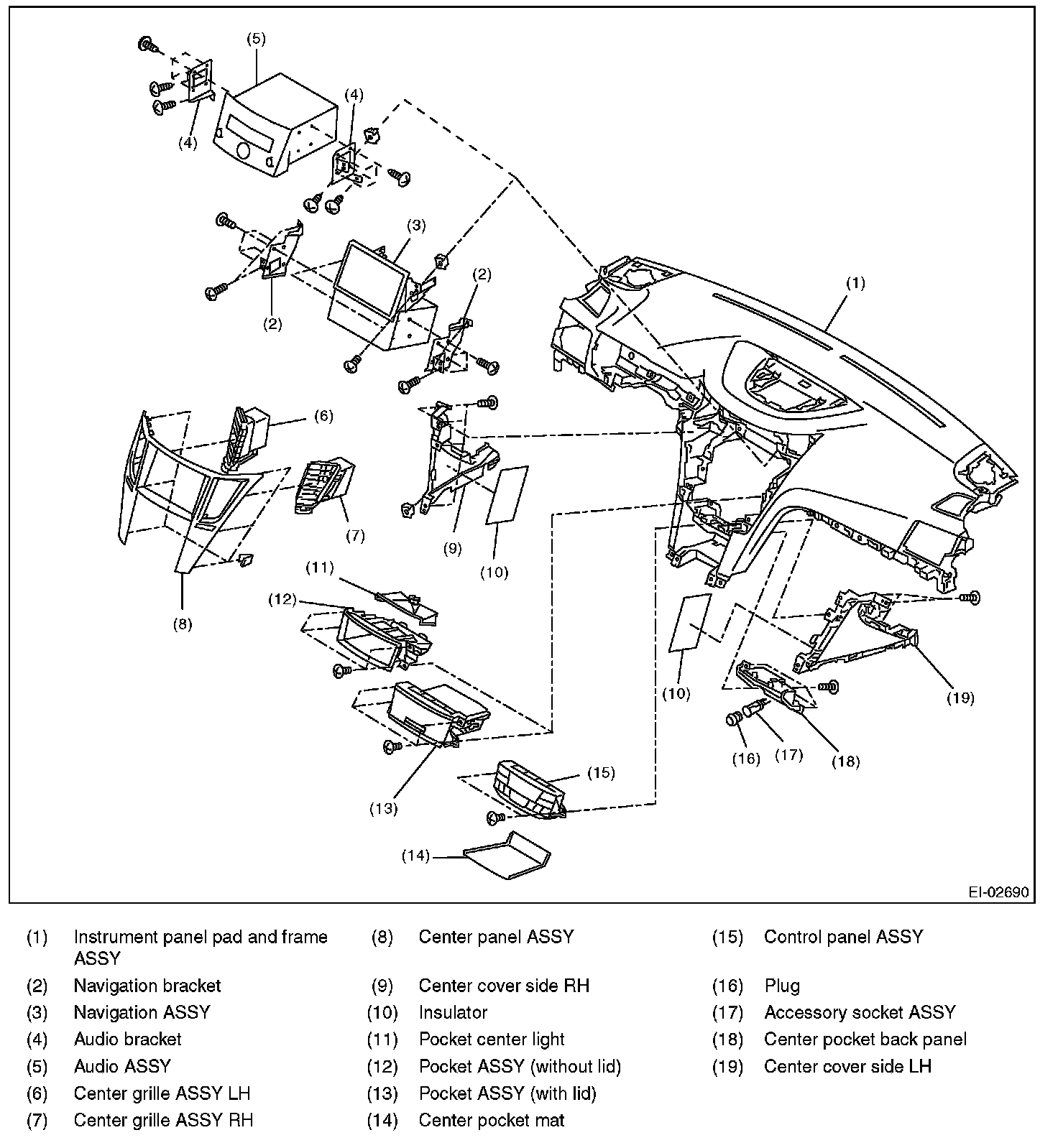 9. Remove the navigation assembly. (model with navigation)