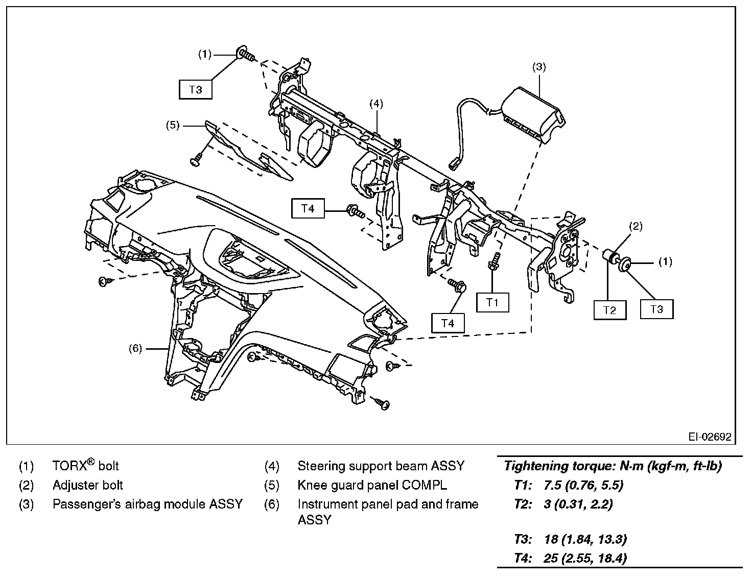 Passenger's airbag module ASSY: 7.5 N.m (0.76 kgf-m, 5.5 ft-lb)