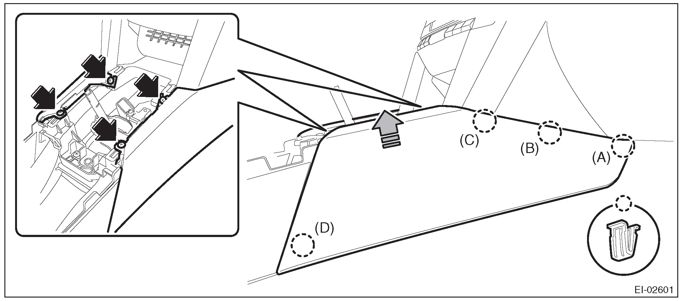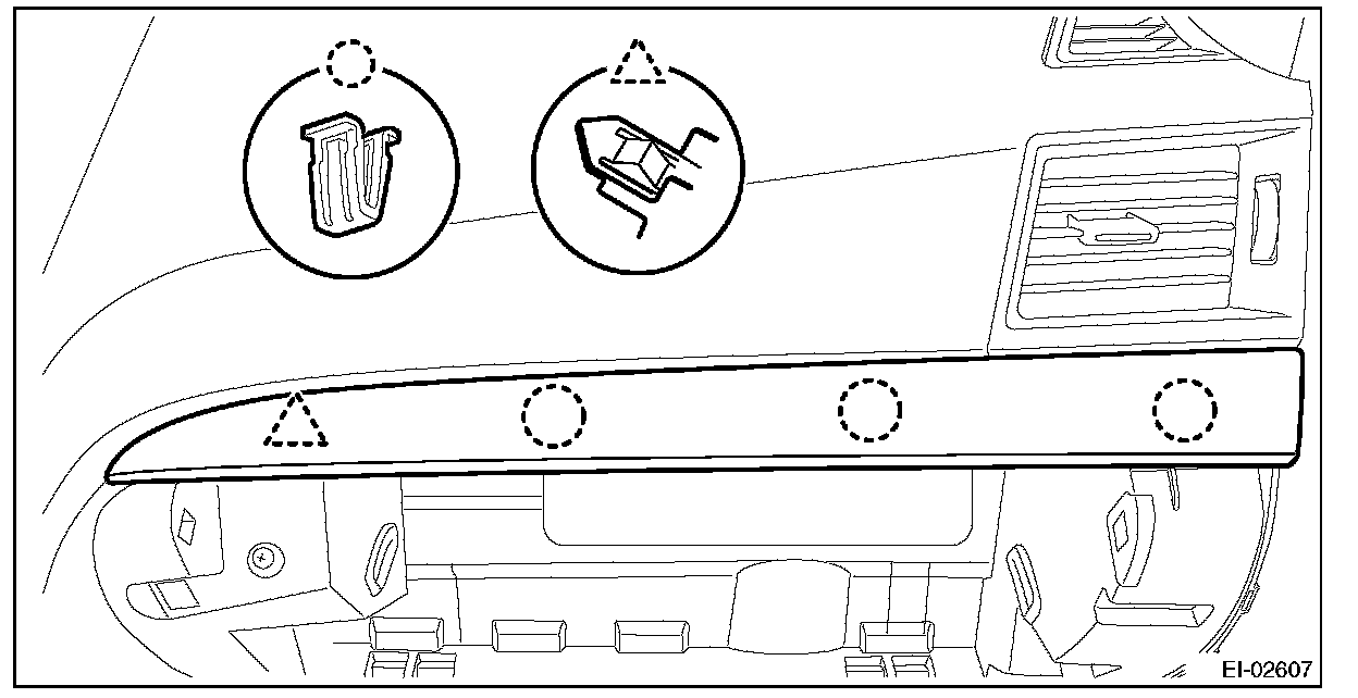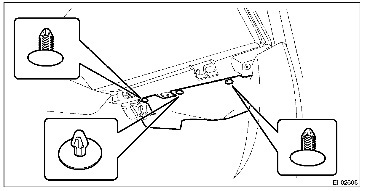 2. Insert the three matching pins on body into the instrument panel assembly.