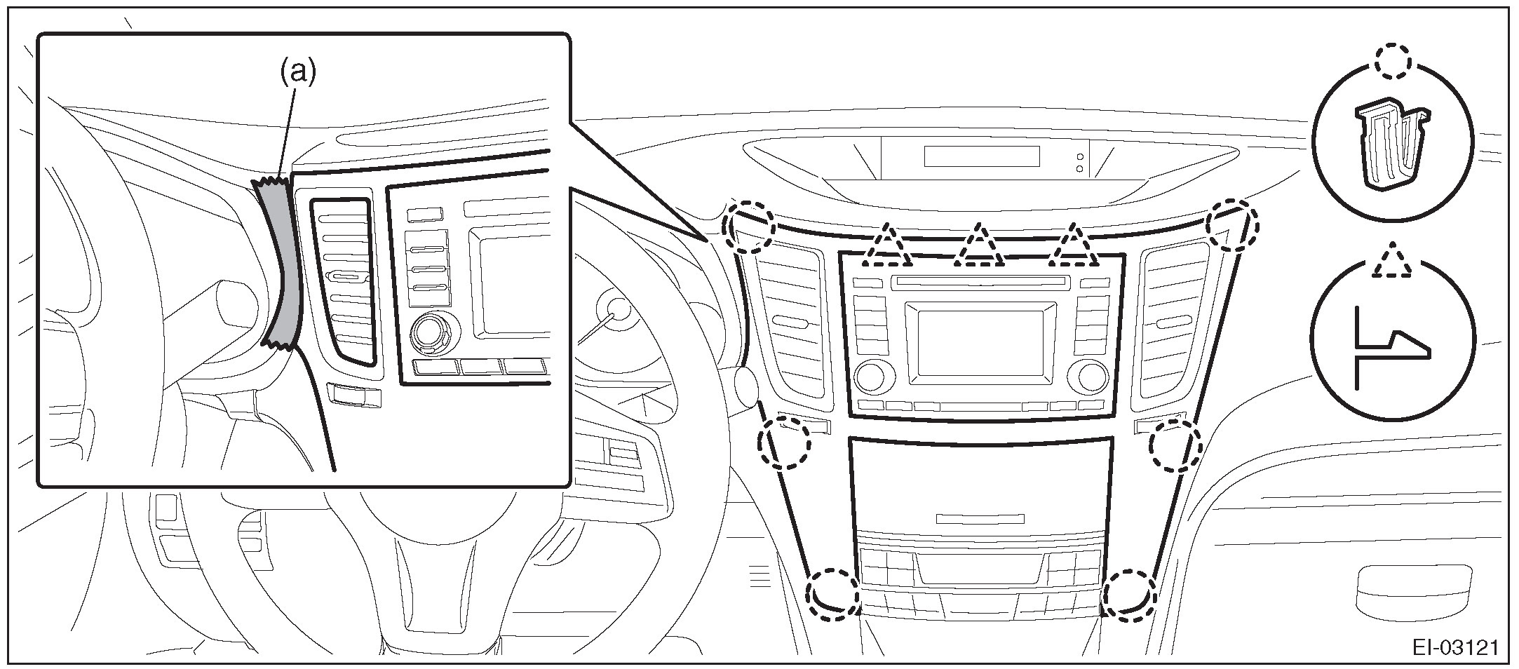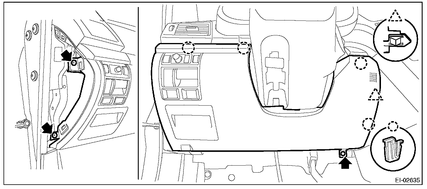 1. Remove the clips, and remove the instrument panel side cover LH.
