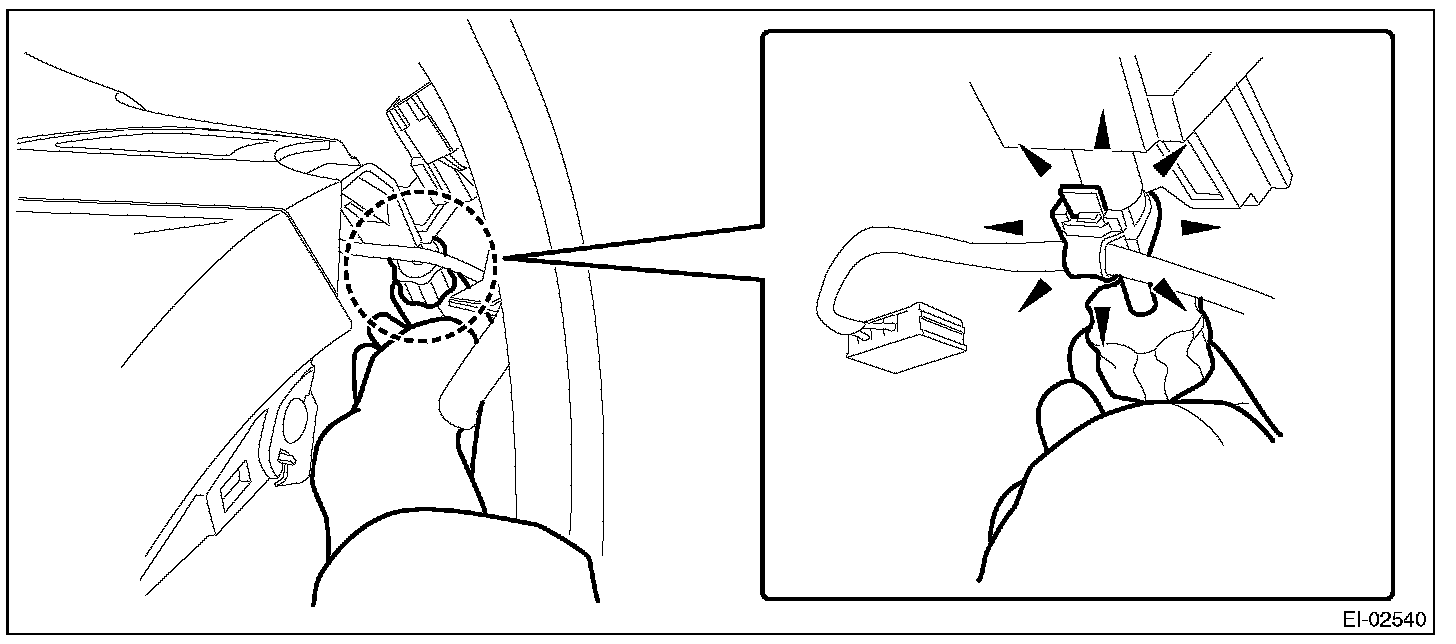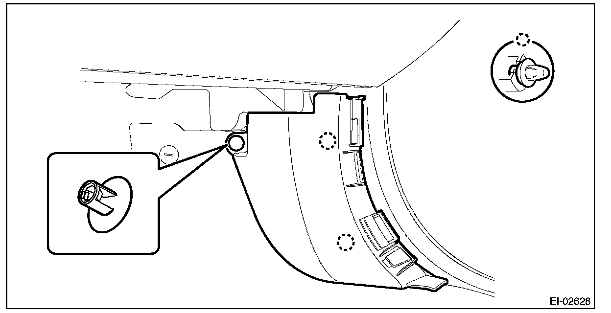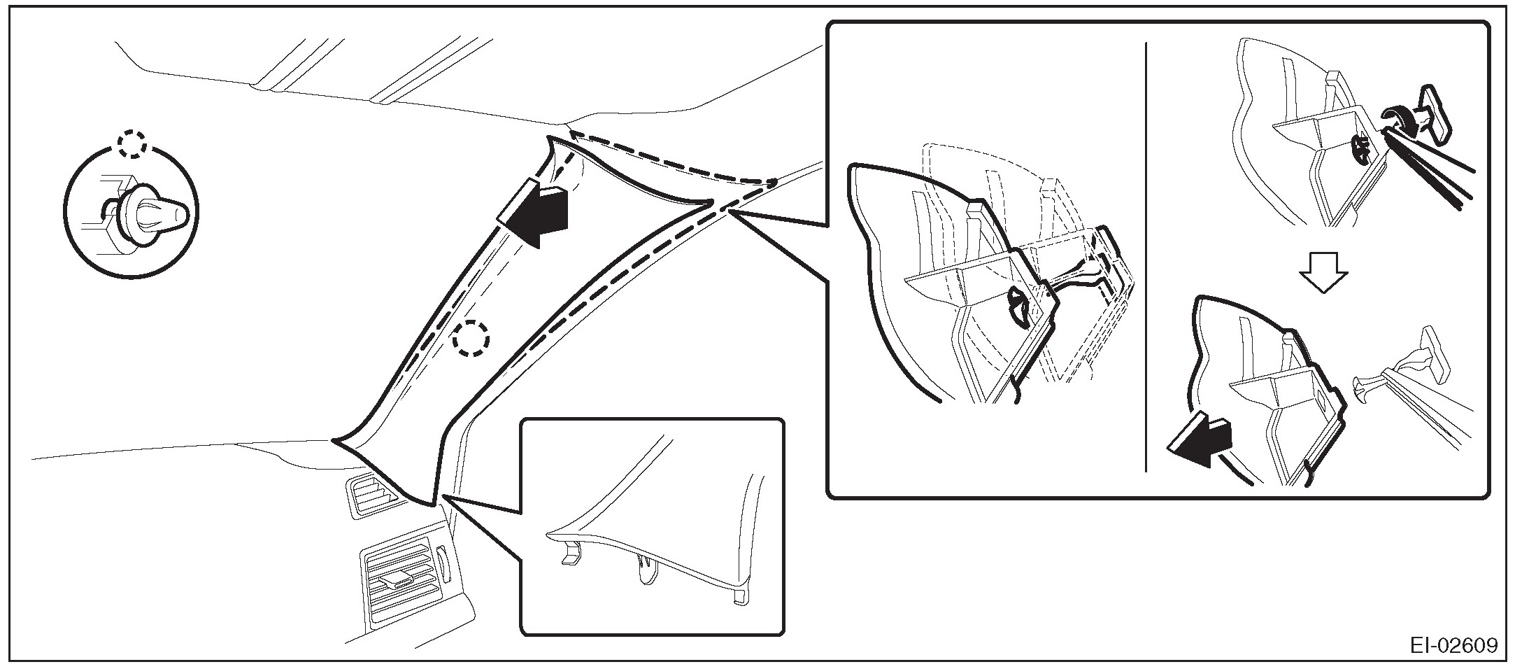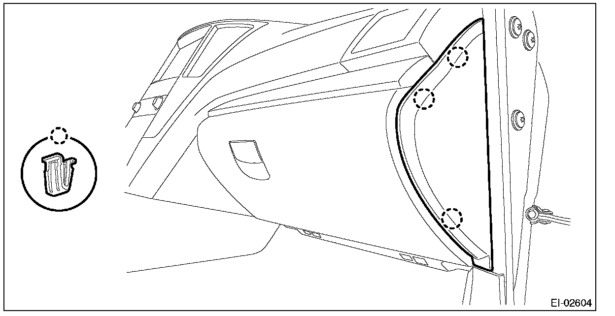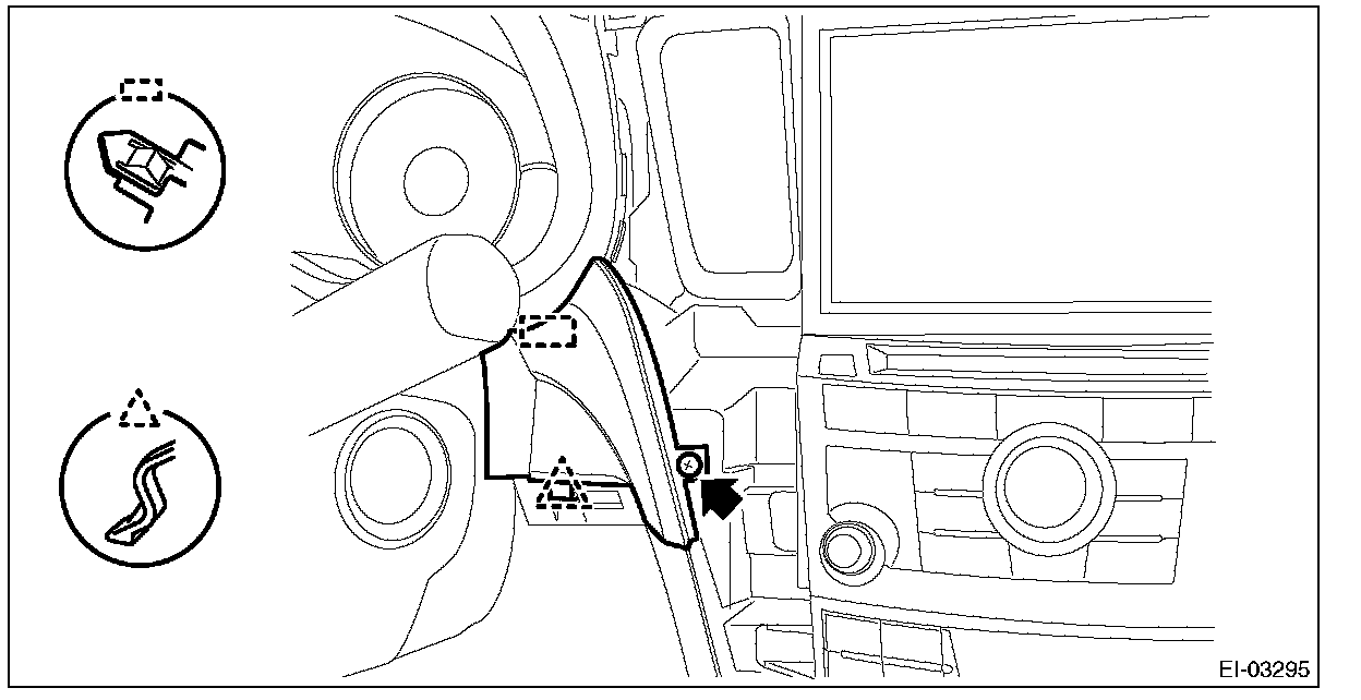1. Pull the upper part of the front pillar trim towards the center of the vehicle.