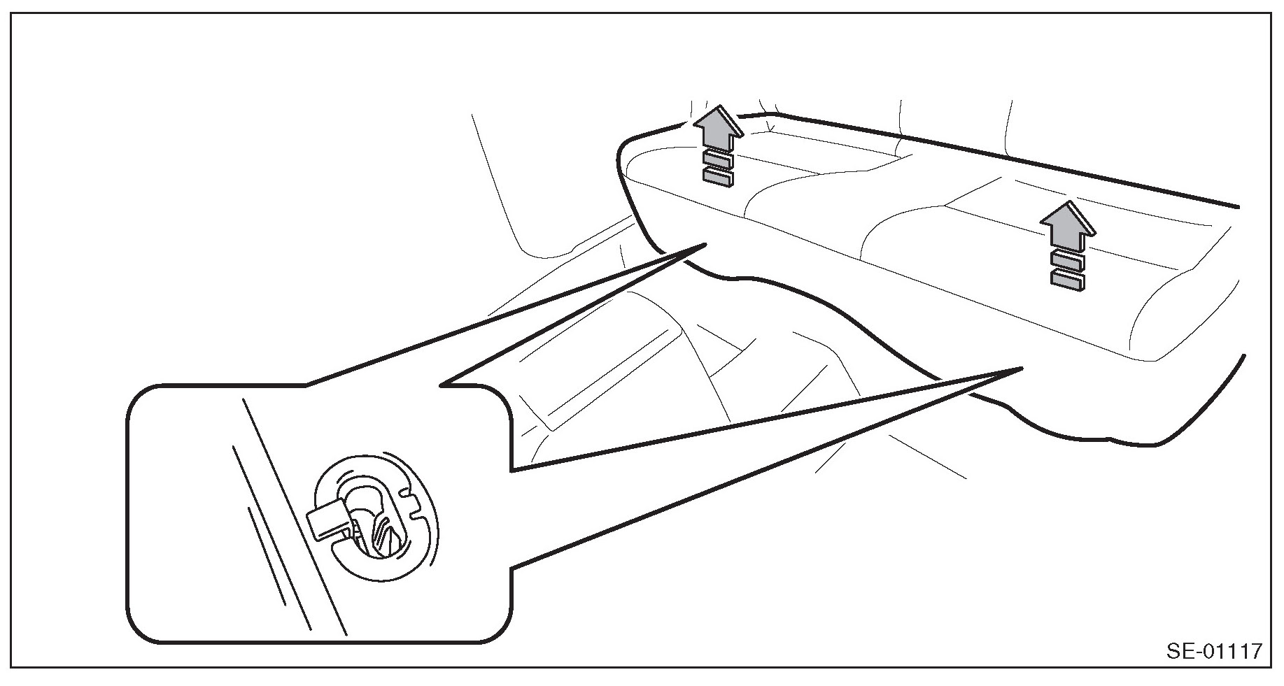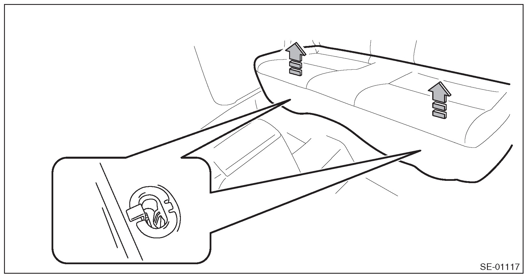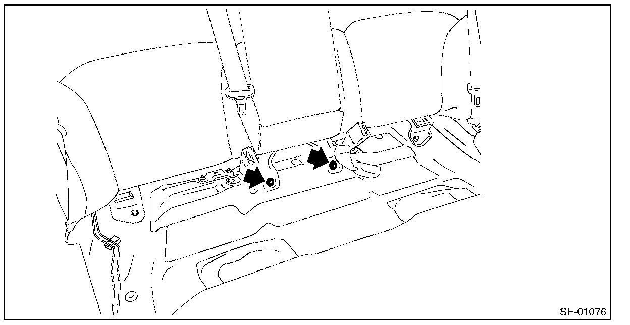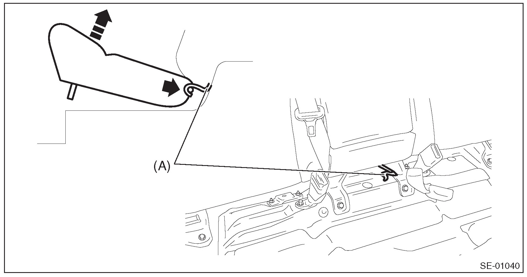 CAUTION: If the hook is removed from vehicle body, replace the hook with the new part to avoid the deterioration of seat securing.
