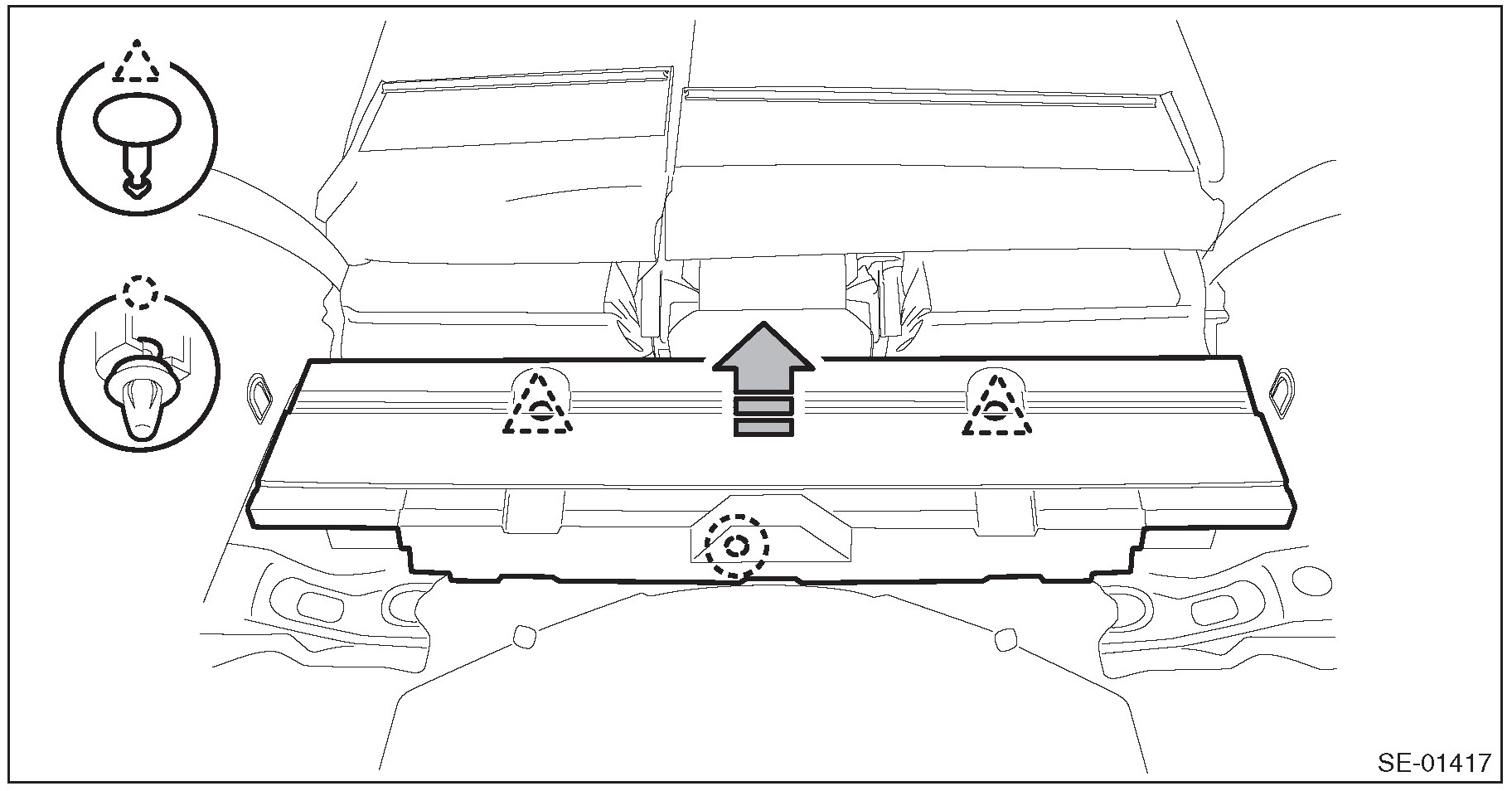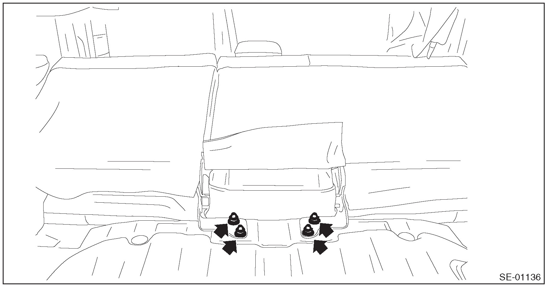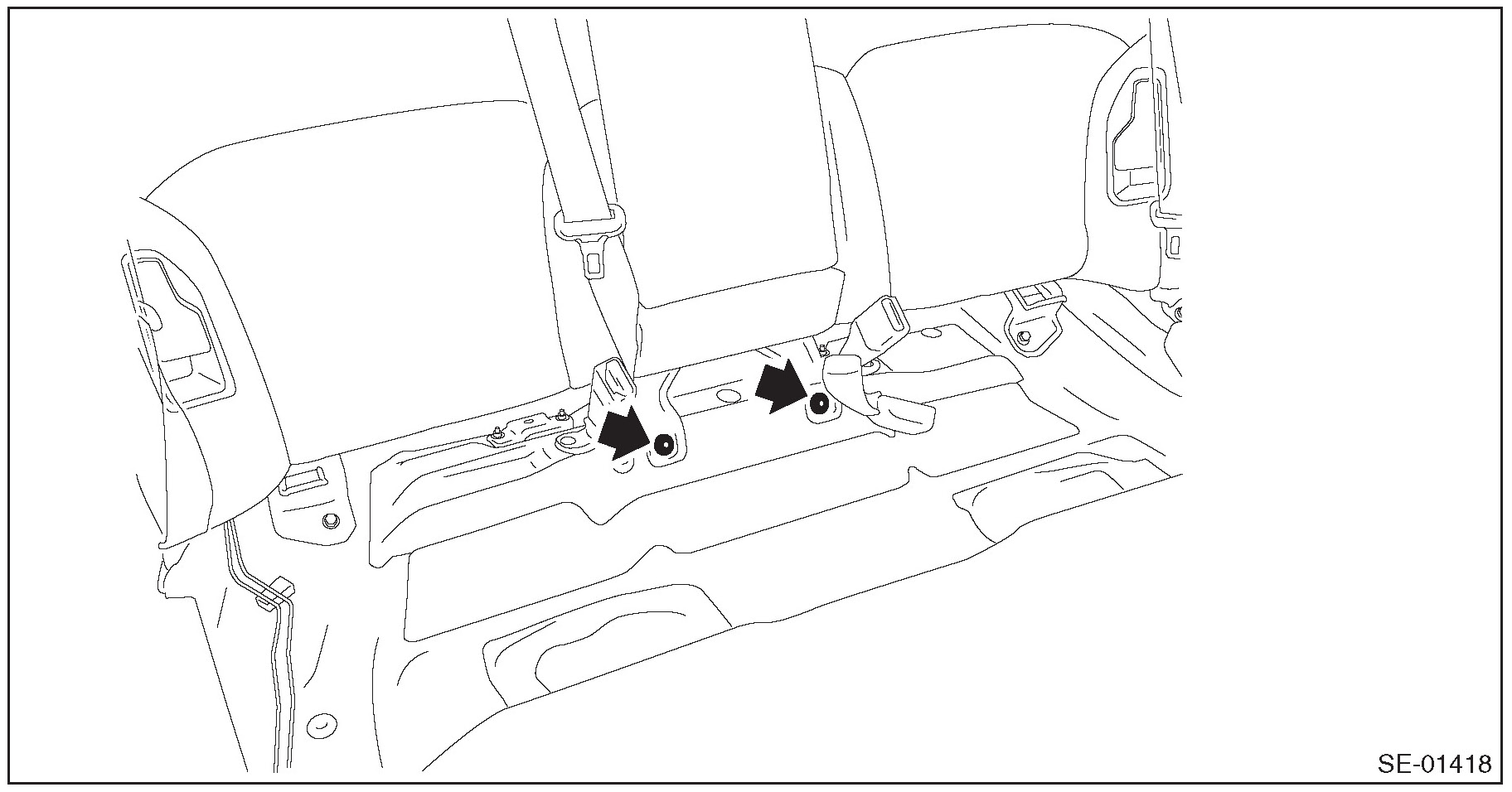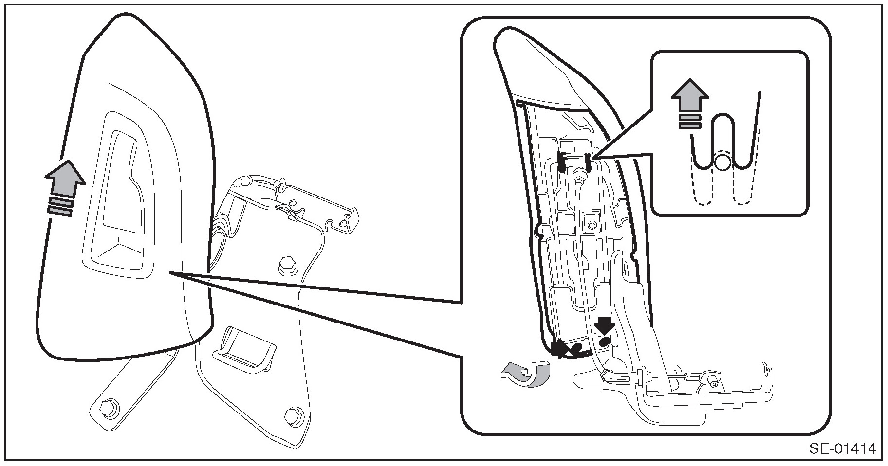 CAUTION: If the hook is removed from vehicle body, replace the hook with the new part to avoid the deterioration of seat securing.