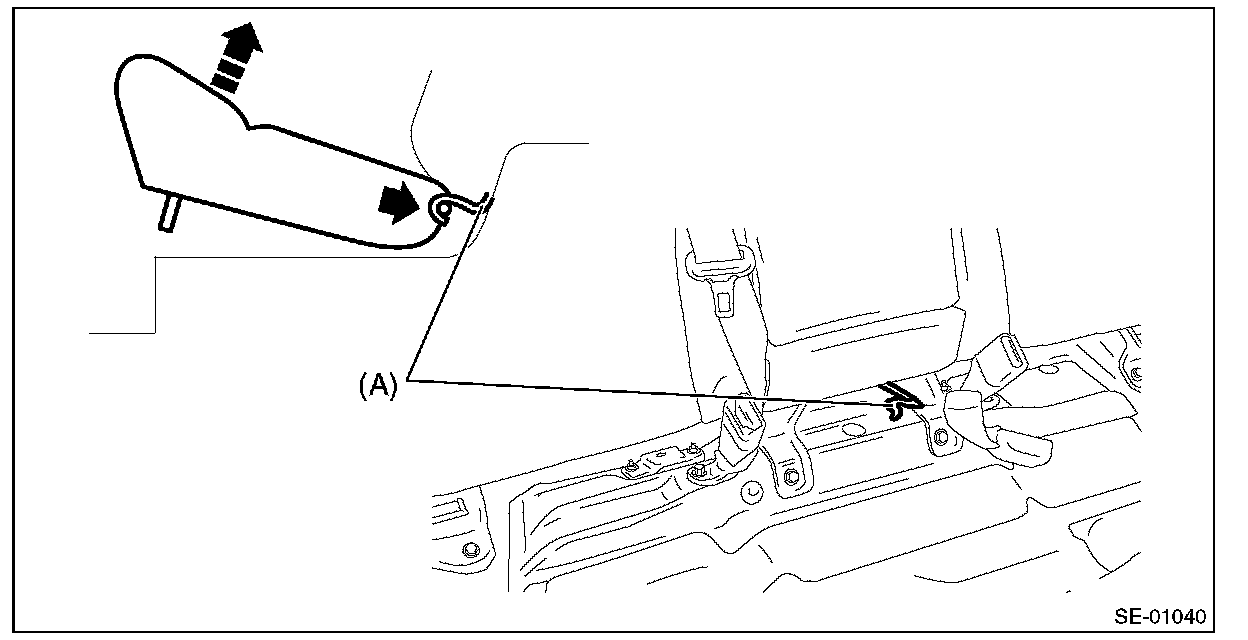 2. Remove the hook (A) by pushing it back while lifting the front side of the seat cushion, and remove the seat cushion.