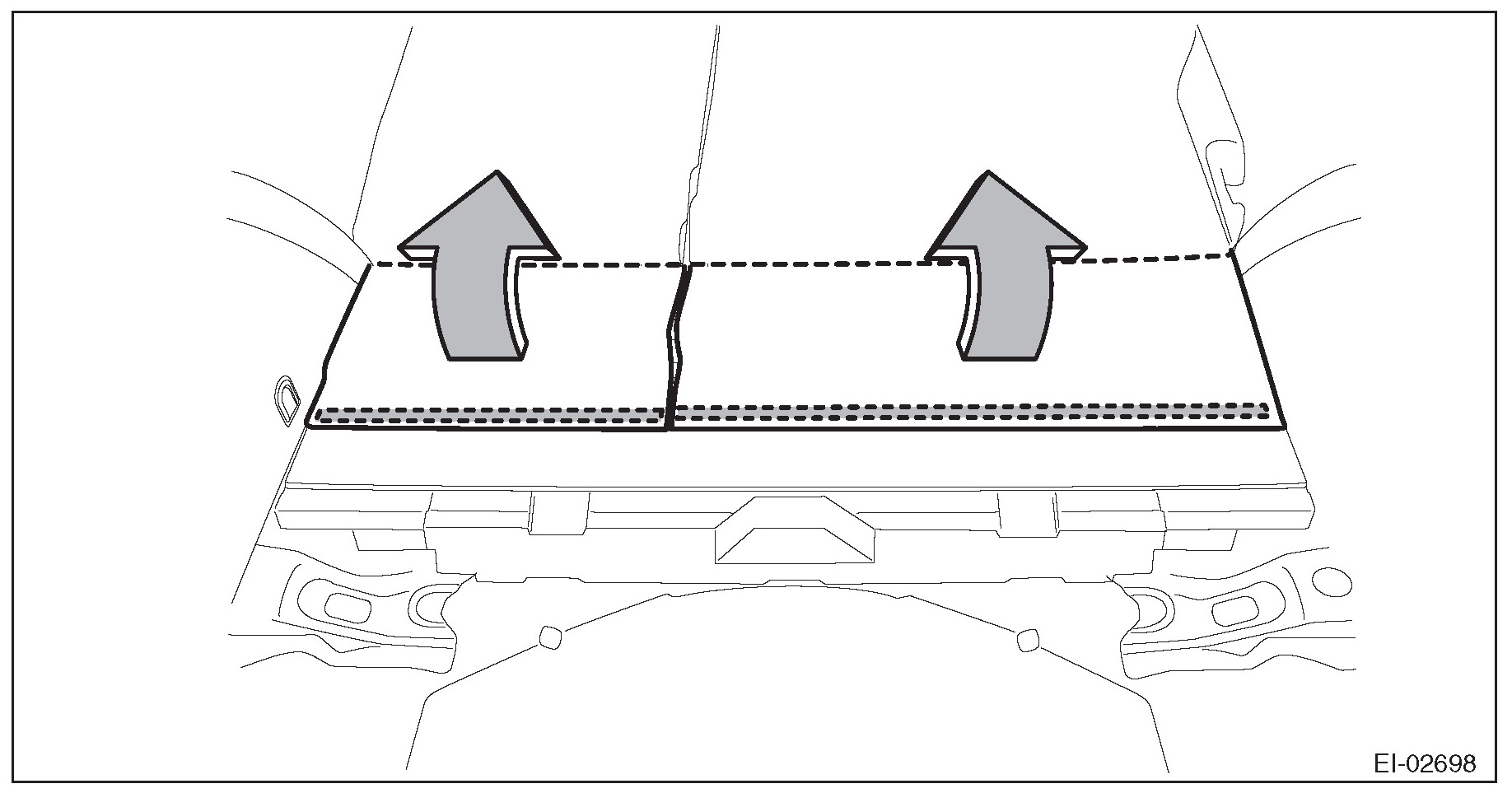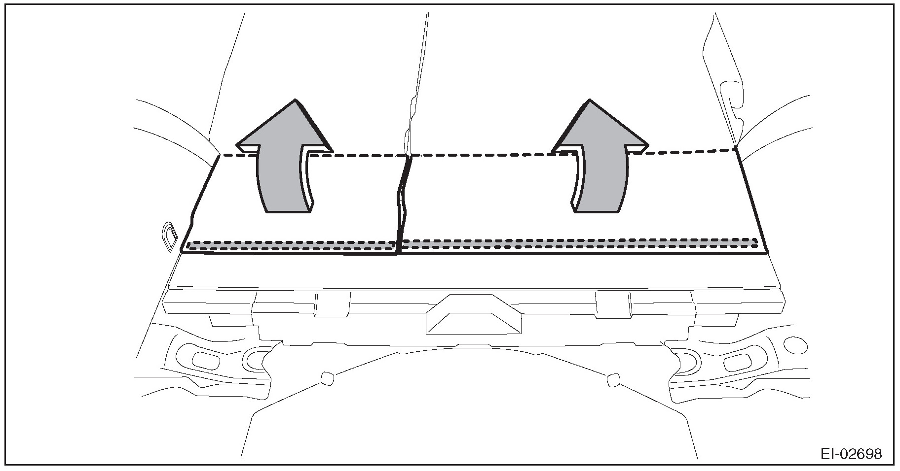 7. Take out the part outside the vehicle so that the body is not damaged by the hinges.