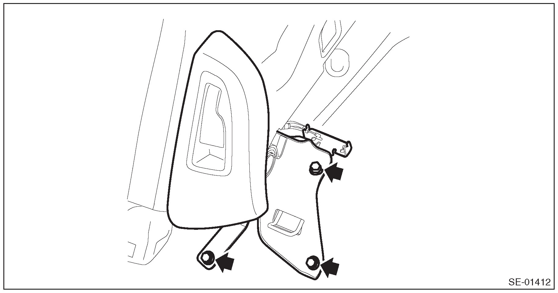 1. Remove the bolts, and remove the backrest side pad assembly RH.