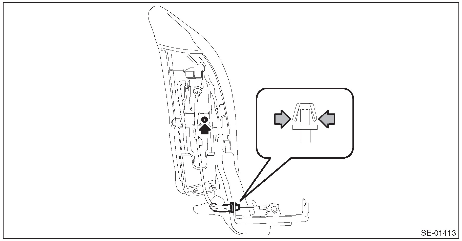 5. Referring to the above steps, remove the backrest side pad assembly LH.