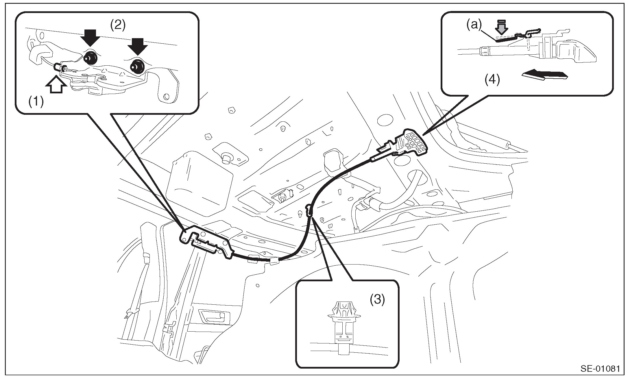 4. Press the stopper portion (a), and remove the release lever assembly while sliding it forward.