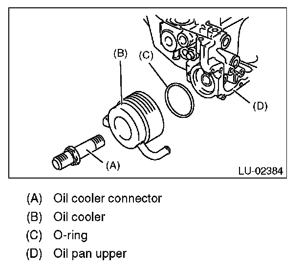 1) Tighten the oil cooler connector to install the oil cooler to the oil pan upper.