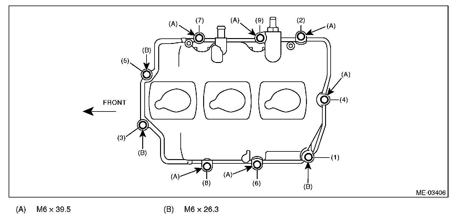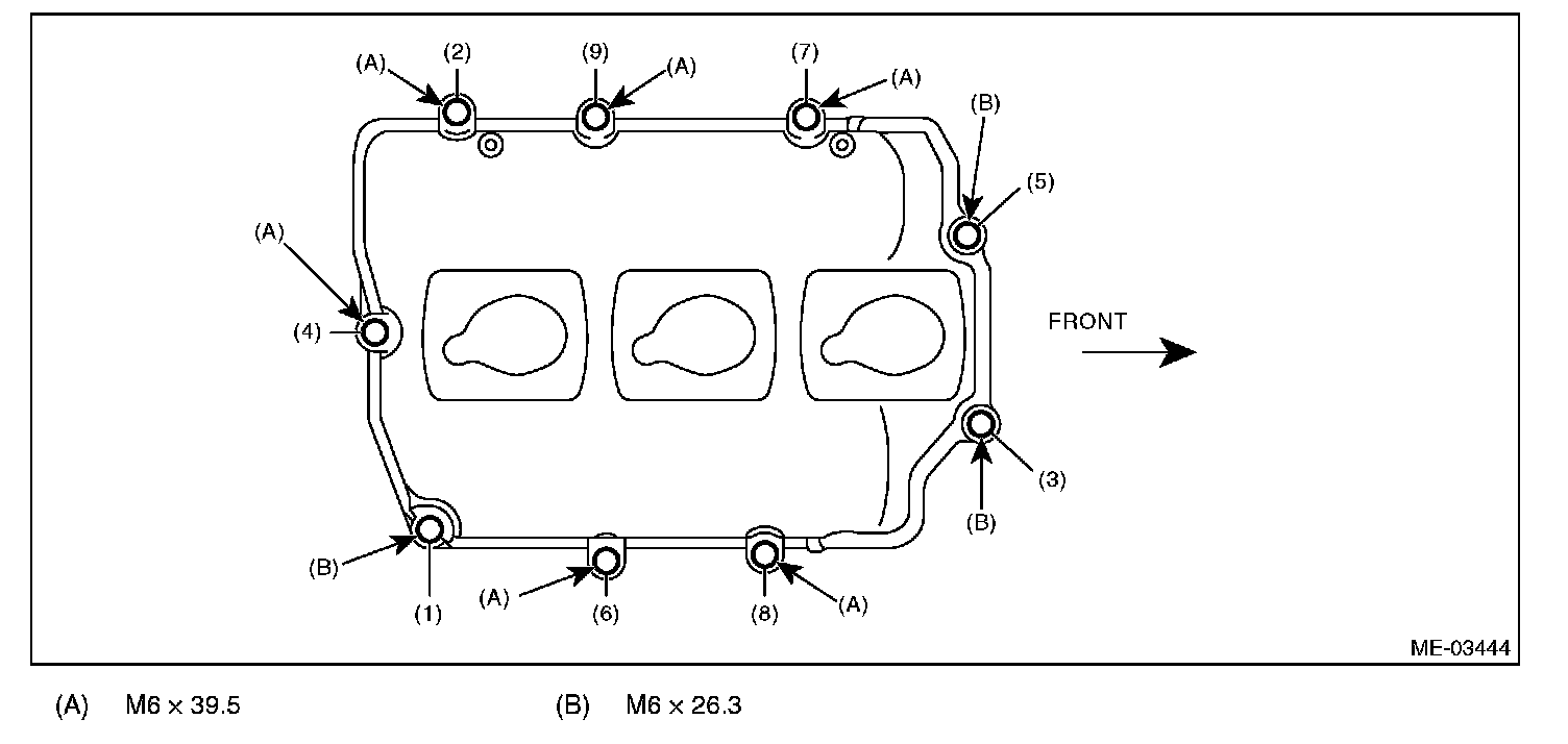 (3) Tighten the rocker cover bolts in the numerical order as shown in the figure.