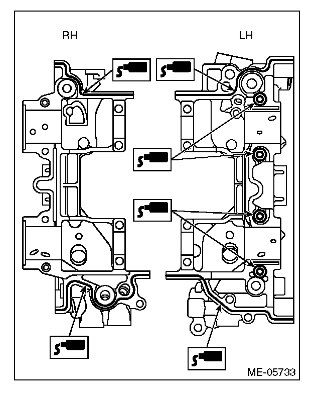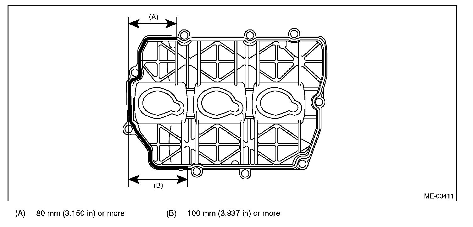 ^ Do not apply liquid gasket excessively. Applying excessively may cause excess gasket to come out and flow toward cam journal, resulting in engine seizure.