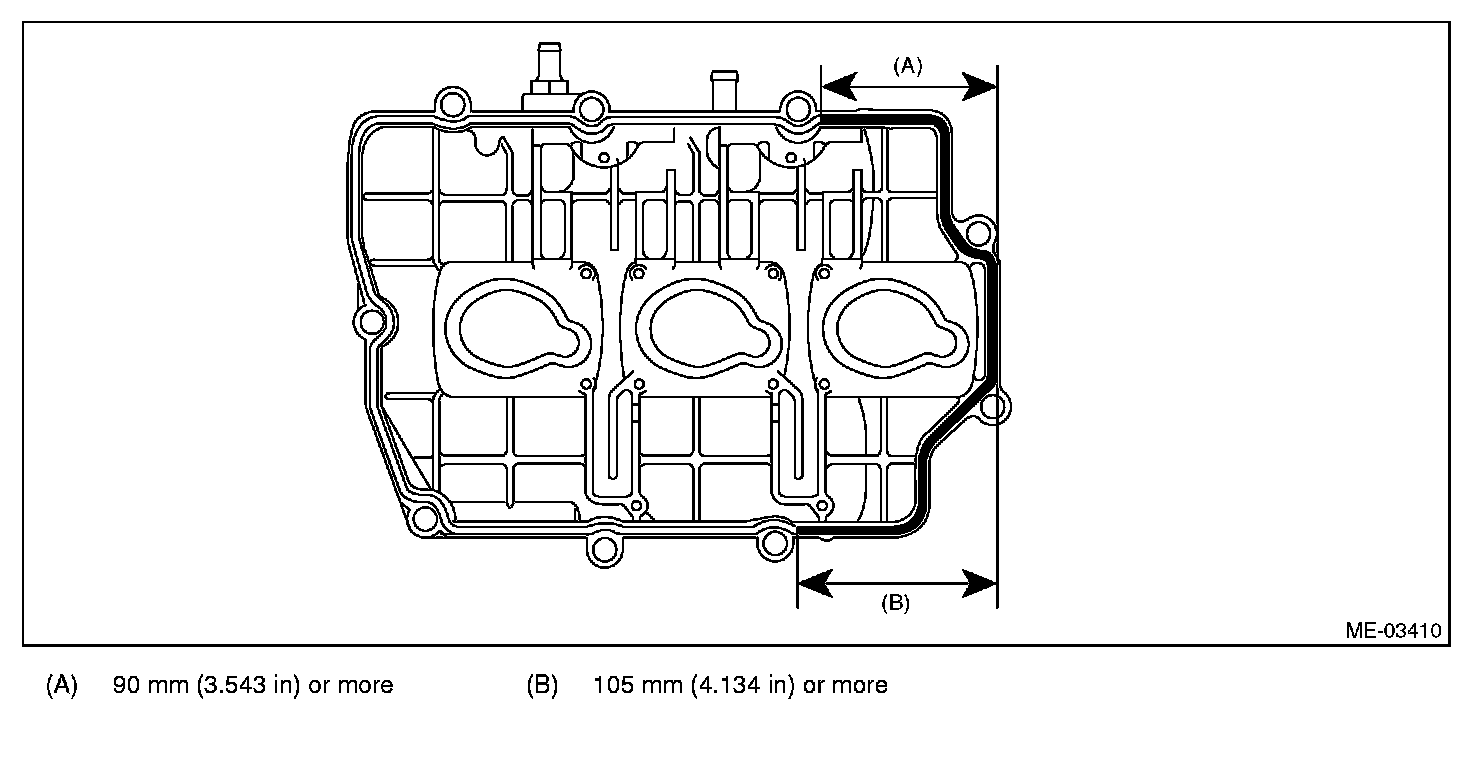 (2) Apply liquid gasket sparingly to the mating surface of cylinder head and rocker cover as shown in the figure.