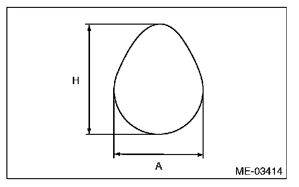 5) Measure the cam lobe height "H" and cam base circle diameter "A". If it exceeds the standard or offset wear occurs, replace it.
