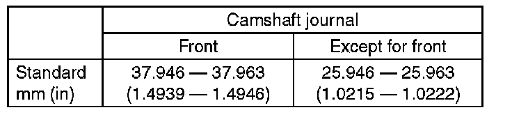 6) Measure the outside diameter of camshaft journal. If the journal diameter is not within specification, check the oil clearance.