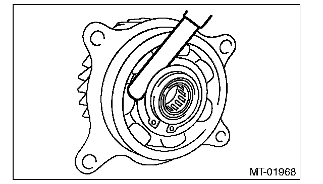 1) Install the needle bearing and snap ring to the transfer drive gear.