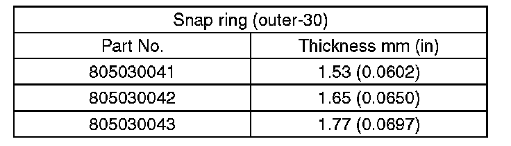 If the measurement is not within specification, select a suitable snap ring and replace it.