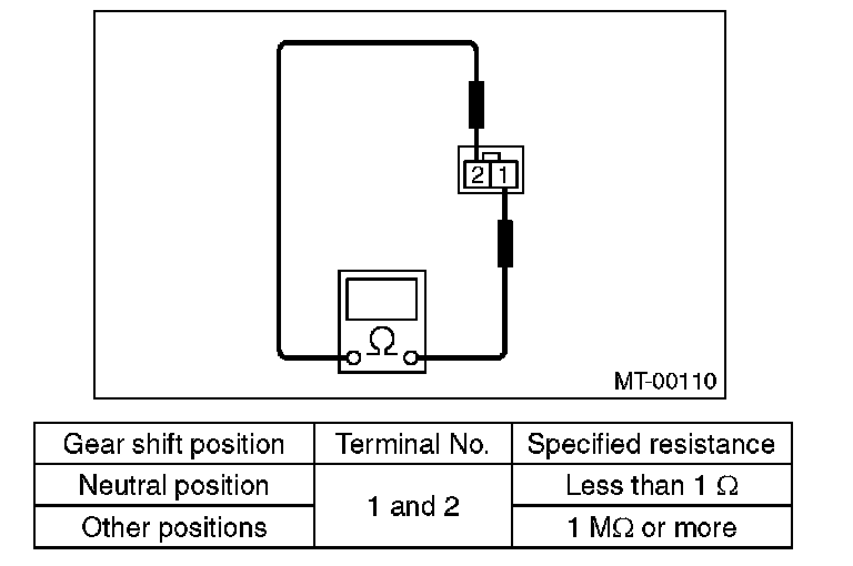 3) Measure the resistance between neutral position switch terminals.