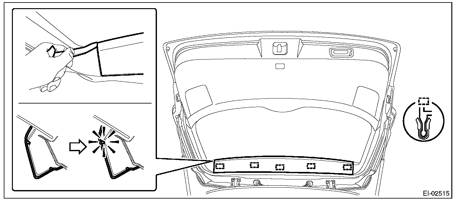 2. Disconnect the claws in the center of trim, and remove the rear gate upper trim.