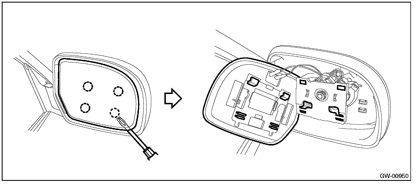 - When removing the mirror, be careful not to damage the back surface of mirror with a flat tip screwdriver.