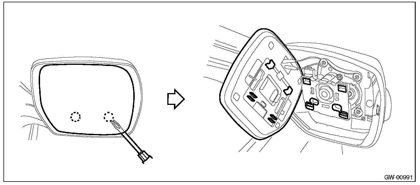 2. Disconnect the mirror heater connector. (Model with mirror heater)