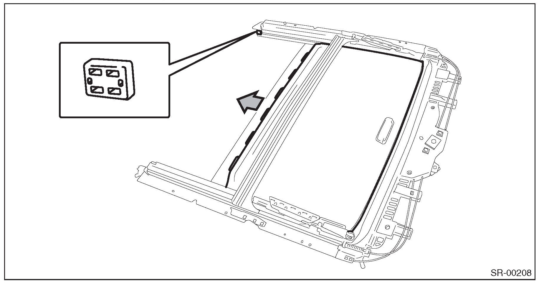 5. Remove the stopper rubber and pull out the sunshade from sunroof frame.
