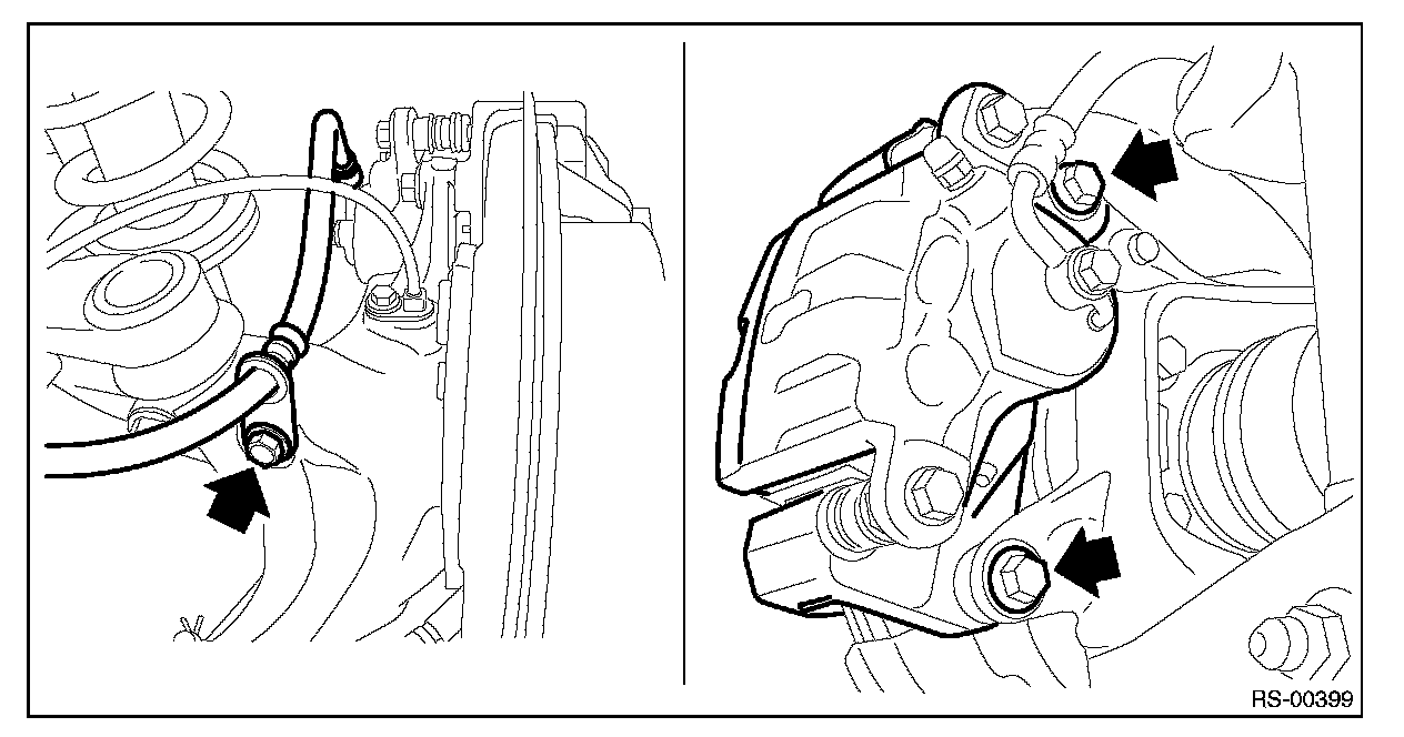 (2) Remove the mounting bolts, and then remove the rear disc brake caliper.