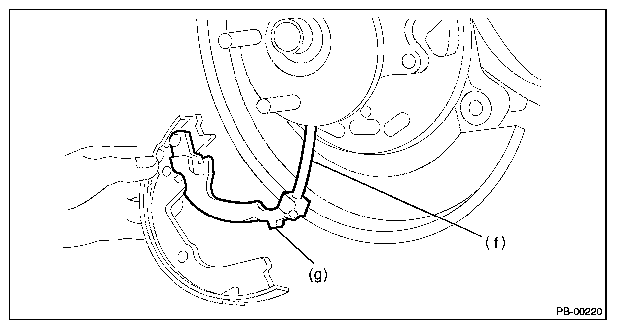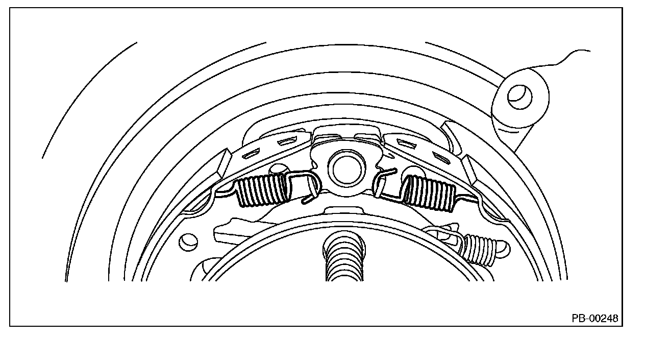 14) When replacing with the new brake shoe, connect the Subaru Select Monitor and perform the "Break-in Parking Brake Drive Mode".