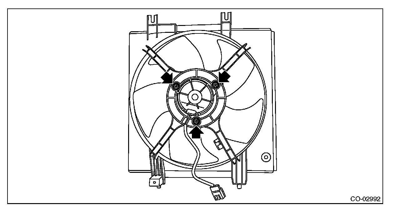 2) Remove the sub fan motor assembly from the radiator sub fan shroud.