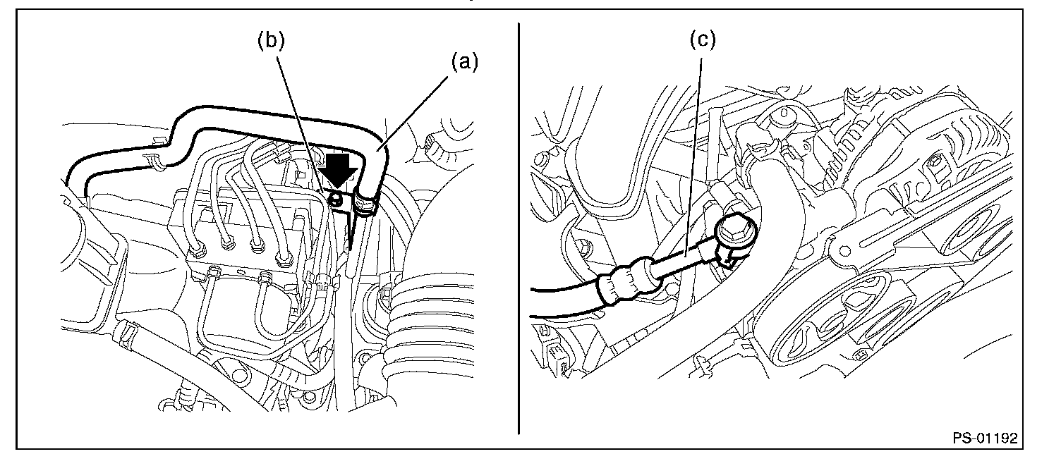 (3) Remove the hose (c) from power steering pump.