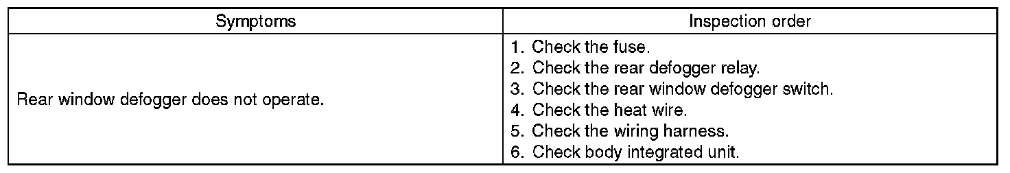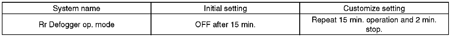 CAUTION: Check whether the rear defogger operation mode setting is in initial setting or customize setting before performing inspection.