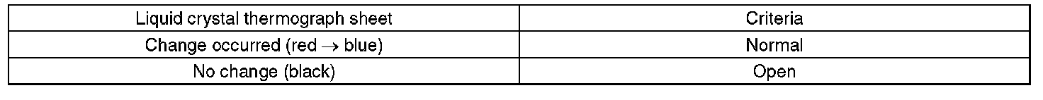 NOTE: Use the liquid crystal thermograph sheet every range it is separated with the separate line.