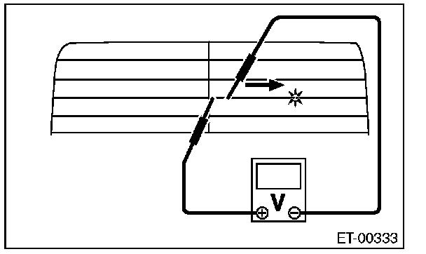 8. Move the tester probe on the negative (-) side slowly along the heat wire. If voltage changes from zero while moving the tester probe, heat wire is open at the voltage change point.