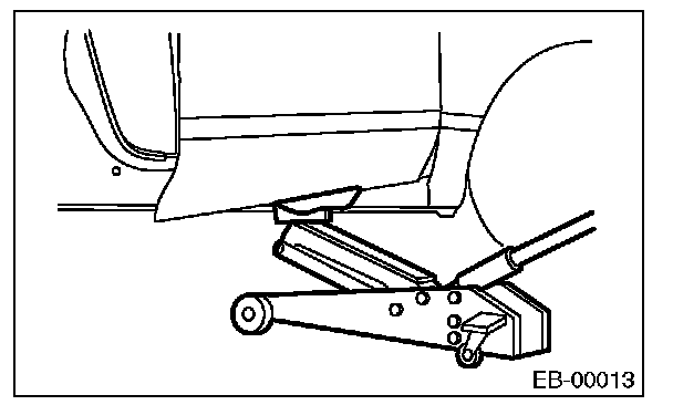 CAUTION: Do not lift the door panel with a floor jack excessively. The door hinges may be damaged.