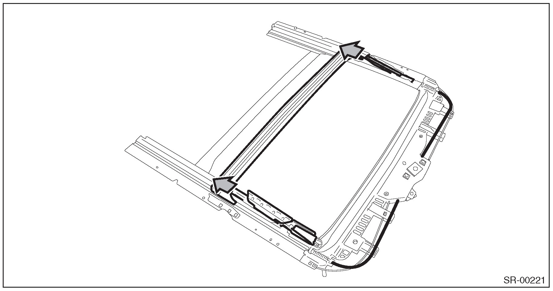 2. Pull out the sunroof cable assembly from the frame roof assembly.