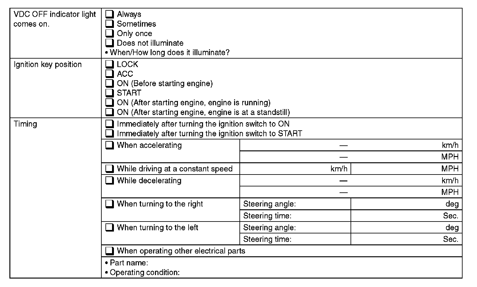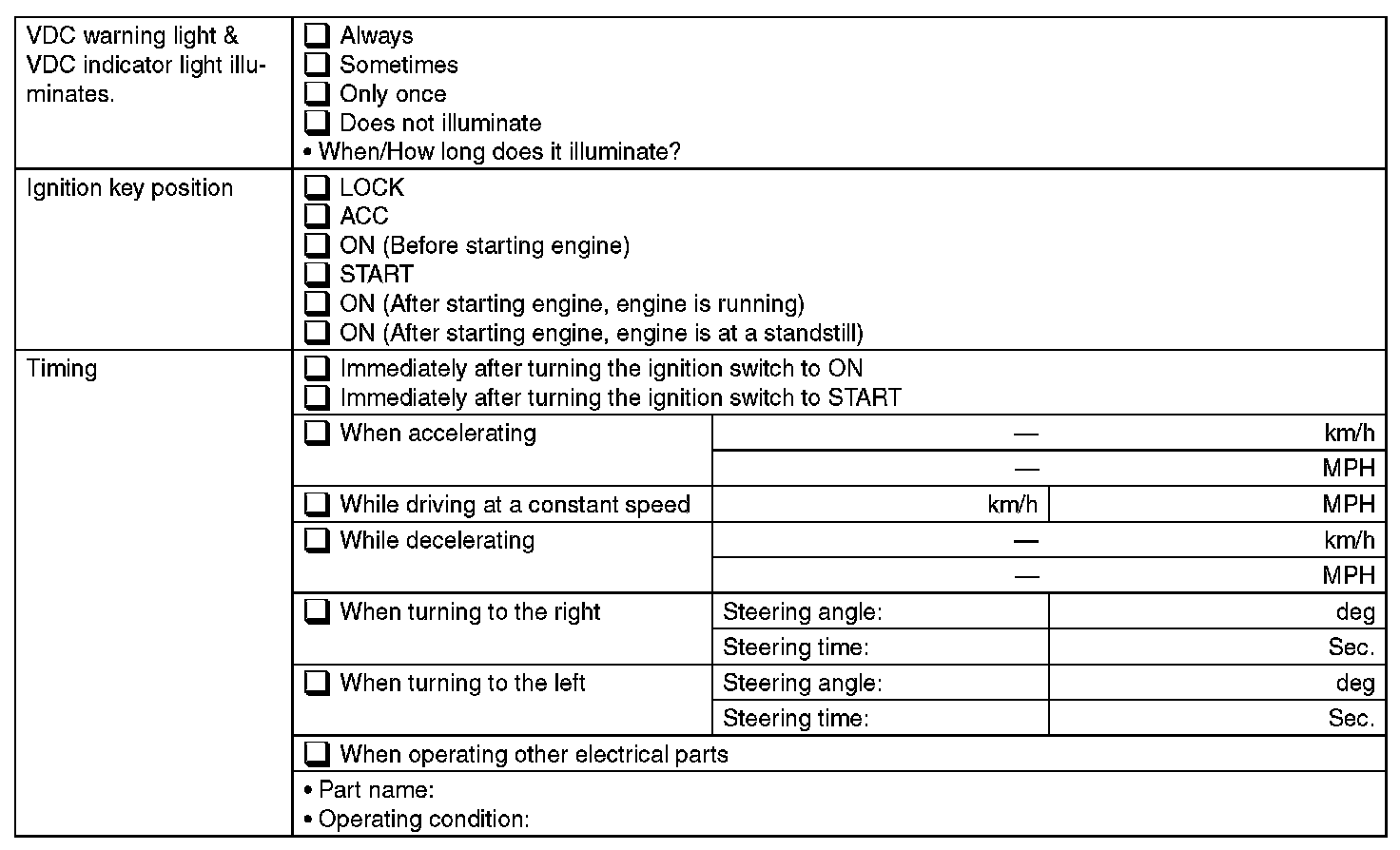 STATE OF VDC WARNING LIGHT & VDC INDICATOR LIGHT