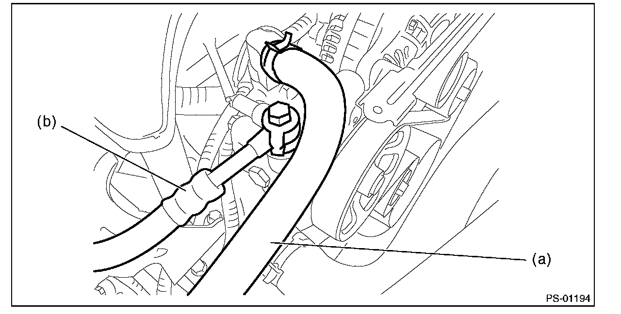 8) Fill with recommended power steering fluid and perform air bleeding.