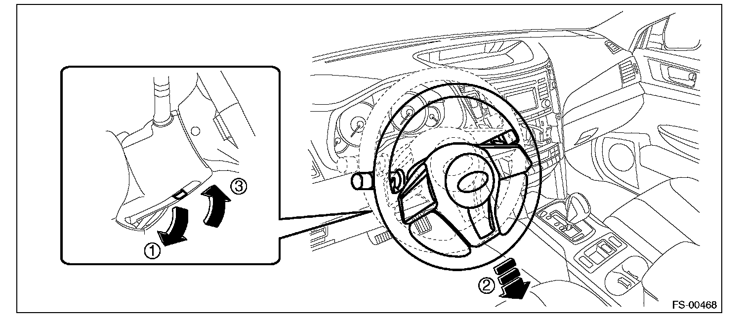 2) Adjust the tilt position of the steering column to the lowest position and lock the tilt lever.