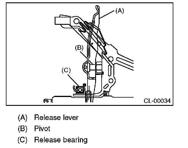 Check the pivot portion of the lever and the contact area with the release bearing case for wear.