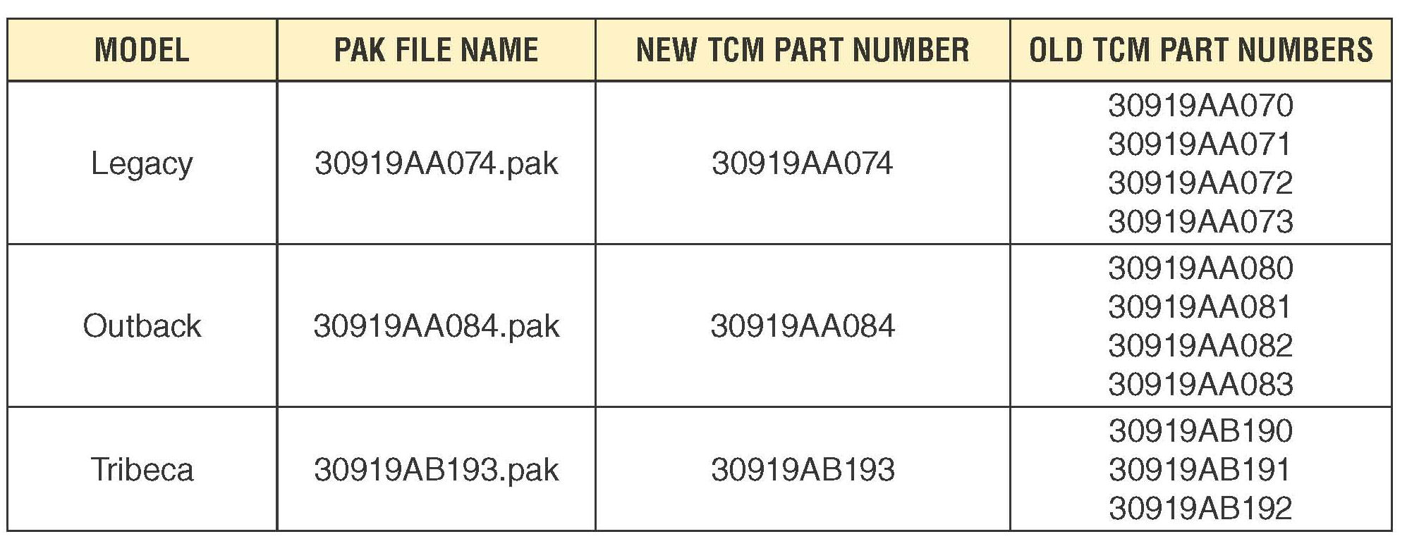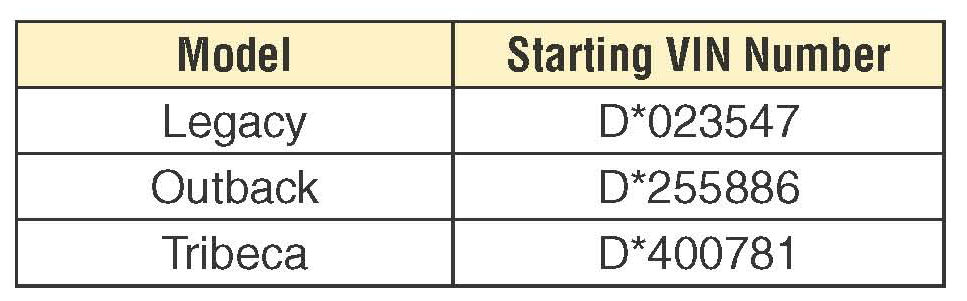 2013MY Legacy, Outback and Tribeca