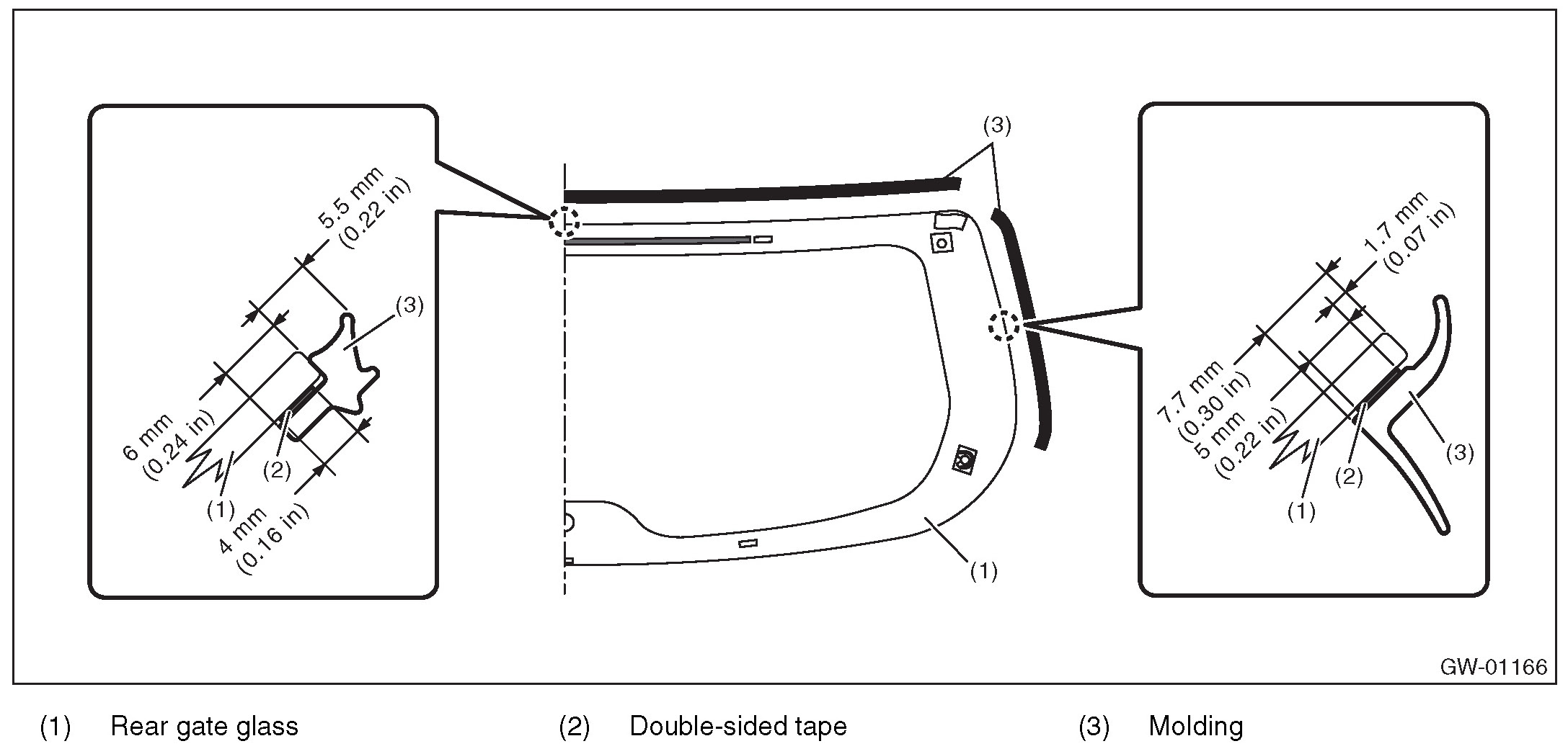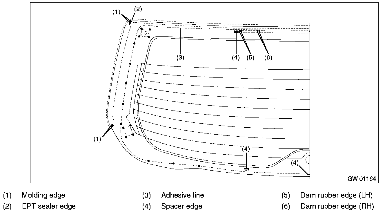 5. Install the rear gate glass in the same procedure as for windshield glass.