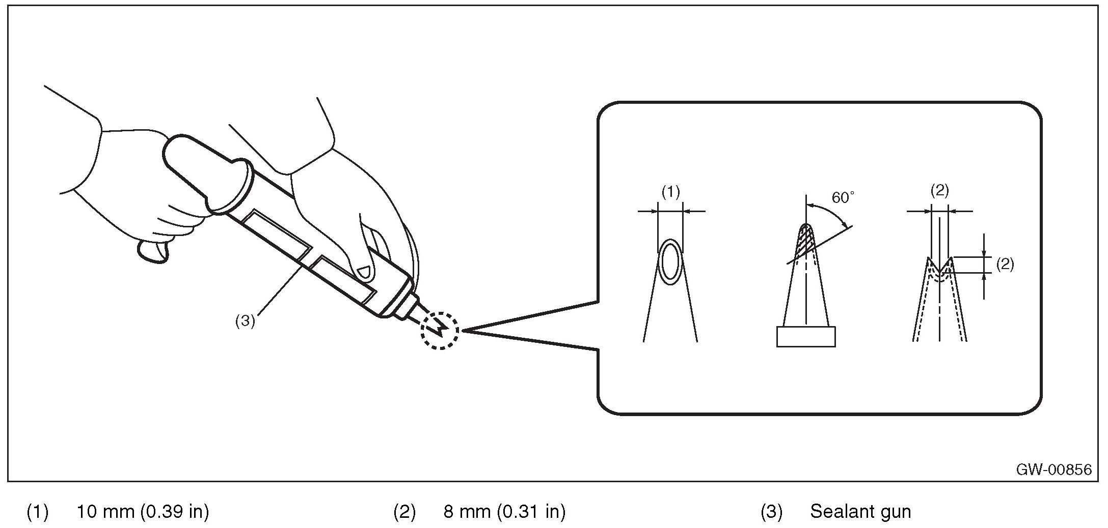 1. Fabricate the cartridge nozzle tip as shown and set the sealant gun with the adhesive.