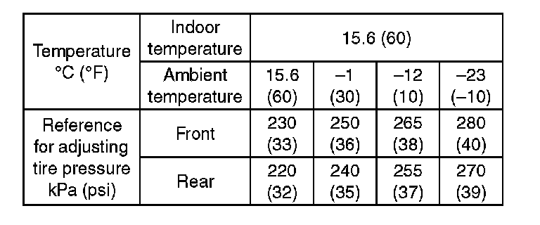 ^ When adjusting tire pressure indoors in winter, there is a big temperature difference between the indoor facilities and outside. Once the car is outside where the temperature is lower, the tire pressure will drop, causing the tire pressure warning light to come on, even if the tire pressure was adjusted to standard values indoors. To avoid this, it is necessary to adjust the tire pressure to the high side in consideration of the difference in temperature between inside and outside.