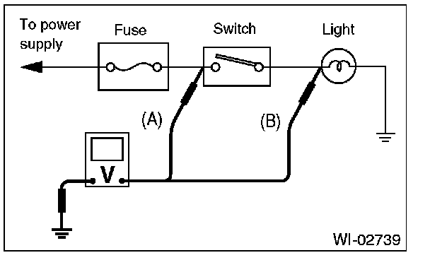 Disconnect all connectors affected, and check continuity in the wiring between adjacent connectors. When the ohmmeter indicates "infinite", the wiring is open.