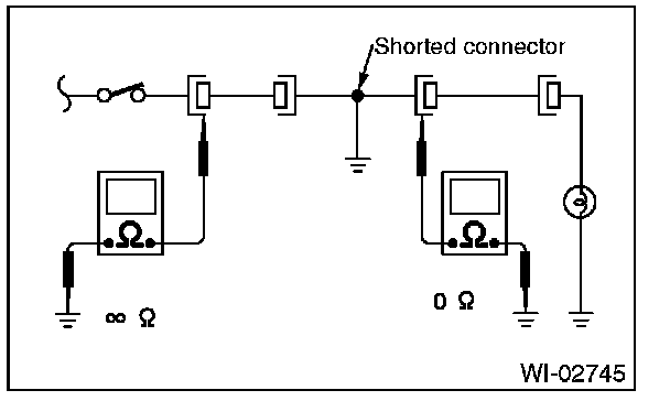 Disconnect all affected connectors, and check continuity between each connector and ground. When the ohmmeter indicates continuity between a particular connector and a ground, that connector is shorted.