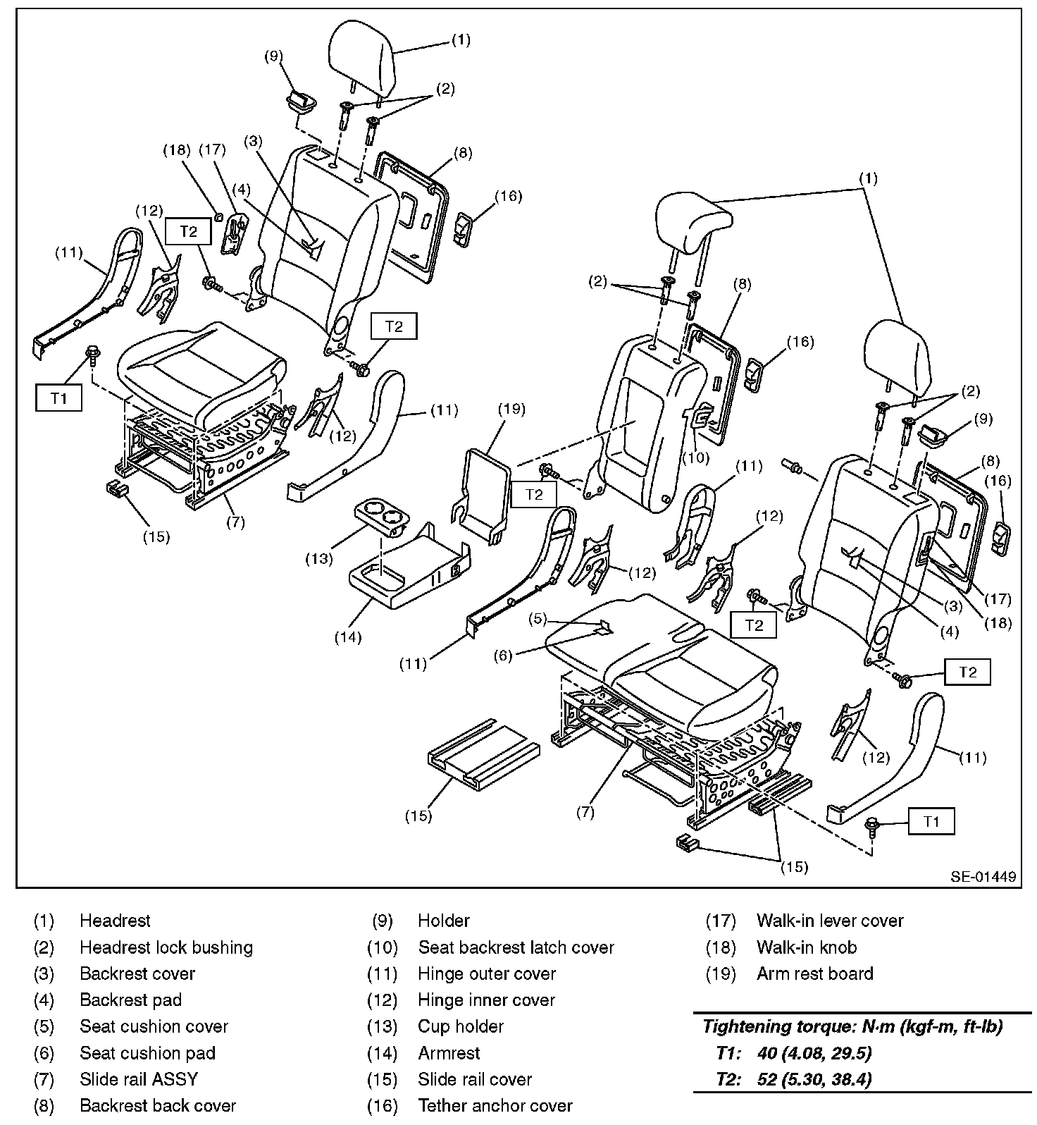 - Airbag system satellite safing sensor is located in the lower of the second-row seat center. Read the cautions and warnings indicated in the AB section before removing the second-row seat.